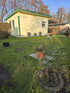 Als 2. Gebäude befindet sich gleich daneben, ein ca. 17,5 qm großes Holzhaus/Gartenlaube. Diese ist unterteilt in Aufenthaltsbereich mit Kochecke sowie ein Schlafboden in der Dachspitze.